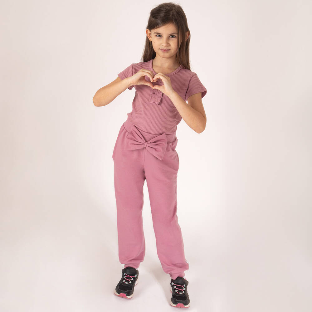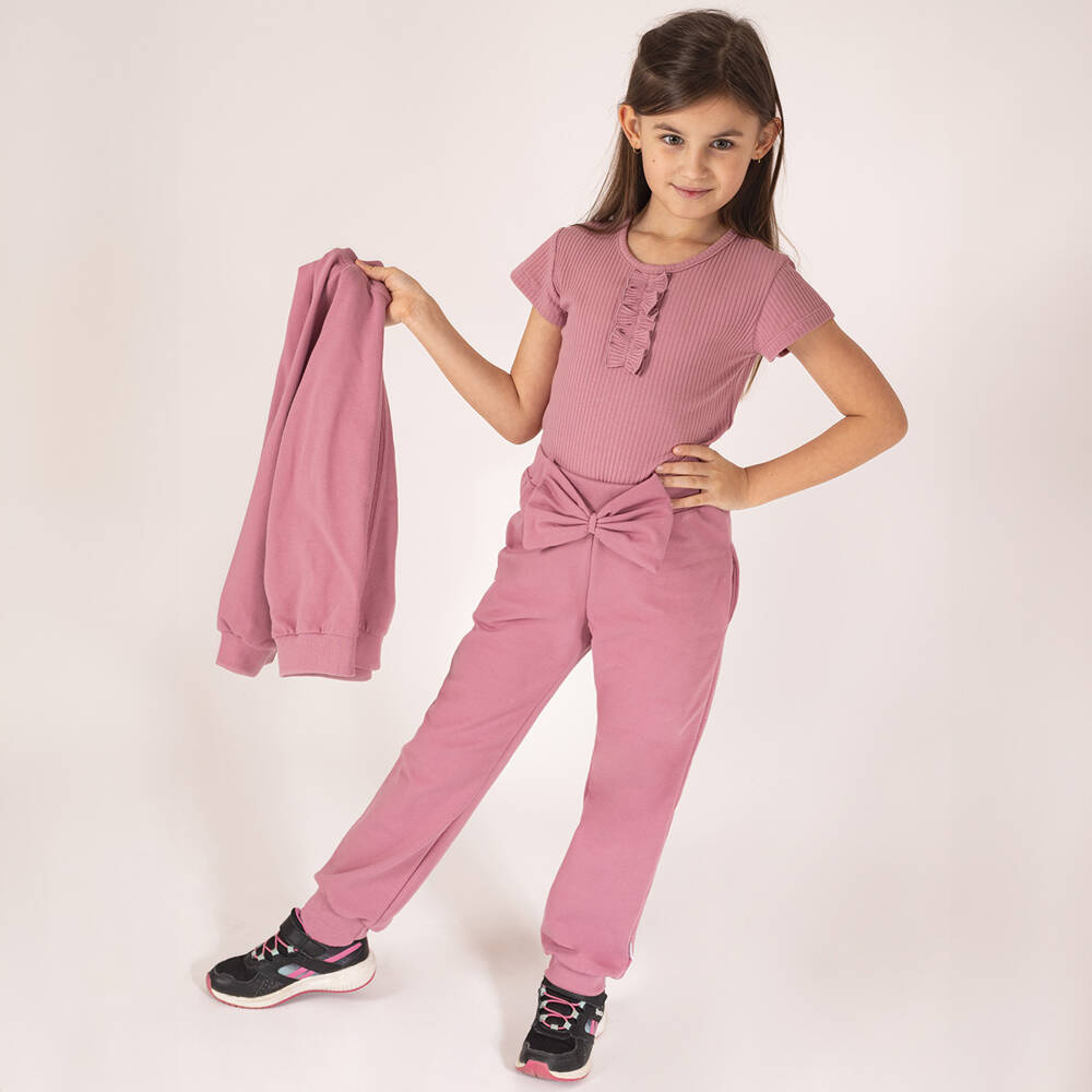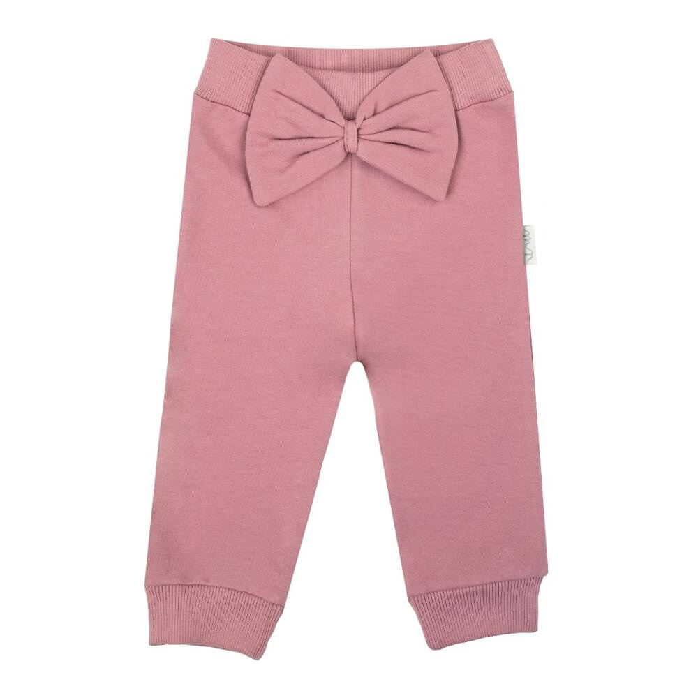 Zapytaj o produktSpodnie dresowe uszyte z wrzosowej dresowej bawełny z domieszką elastanu, co powoduje, że materiał nie odkształca się a zarazem jest miły w dotyku. W pasie posiadają wygodną gumkę nie uciskającą brzuszka. Gumka została dodatkowo przeszyta aby zapobiec okręcaniu się. Ubranko zdobi duża kokarda na przodzie. Materiał posiada certyfikat Oeko-Tex Standard 100 Tekstylia godne zaufania.