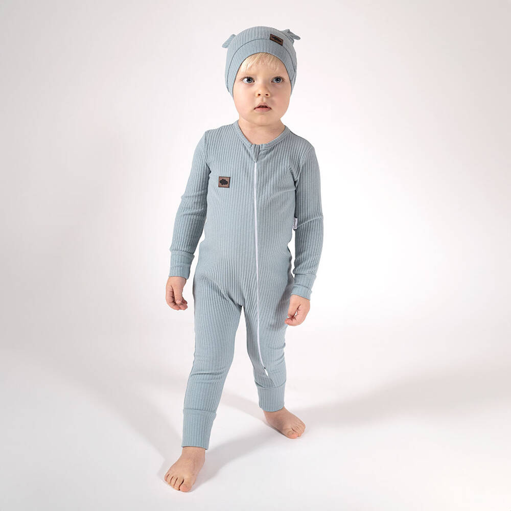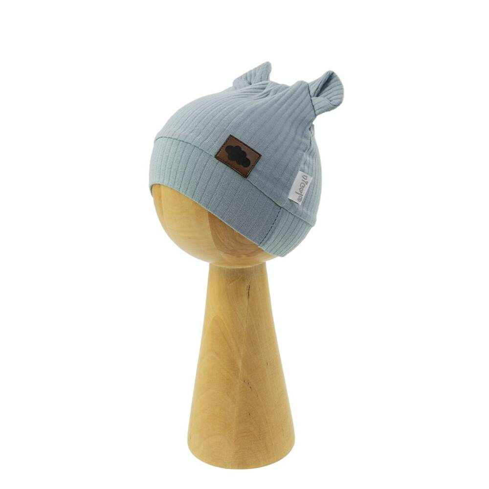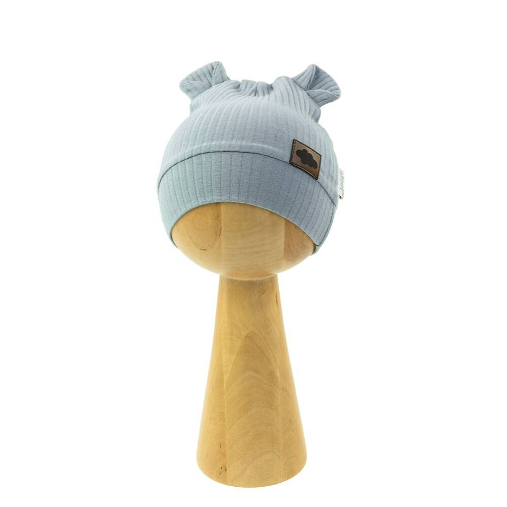 Lodowa czapeczka dla chłopca, uszyta z wysokogatunkowej prążkowanej bawełny z niewielką ilością elastanu. Materiał posiada certyfikat Oeko-Tex Standard 100 Tekstylia godne zaufania. Produkt zdobią uszka, a także naszywka z eko skórki z chmurką. Czapka będzie świetnym uzupełnieniem stylizacji z kolekcji Liam.