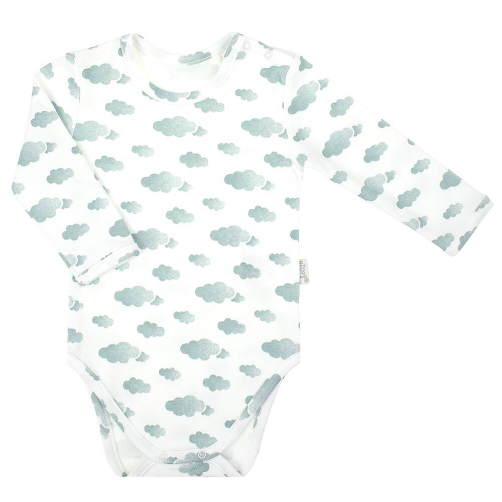 Zapytaj o produktBody z długim rękawem dla chłopca, uszyte ze 100% bawełny drukowanej w lodowe chmurki. Materiał posiada certyfikat Oeko-Tex Standard 100 Tekstylia godne zaufania. Produkt zapinany na ramieniu i w kroku na bezniklowe napy, zapewniając komfort przy ubieraniu.