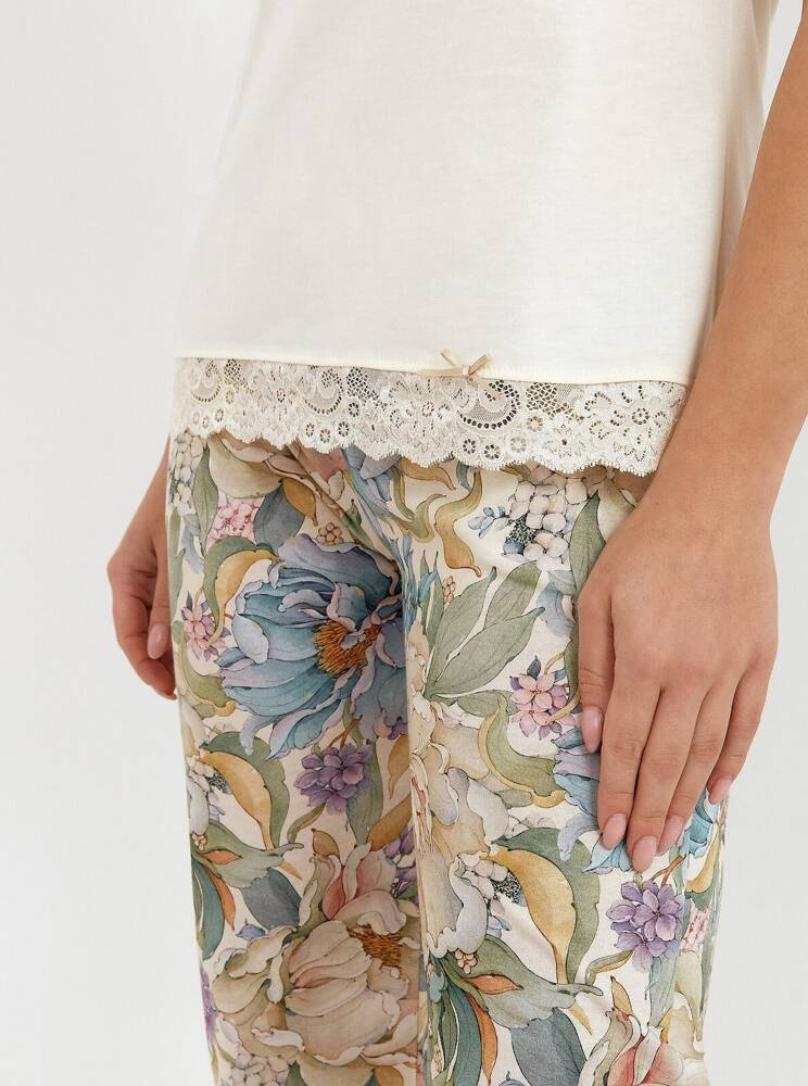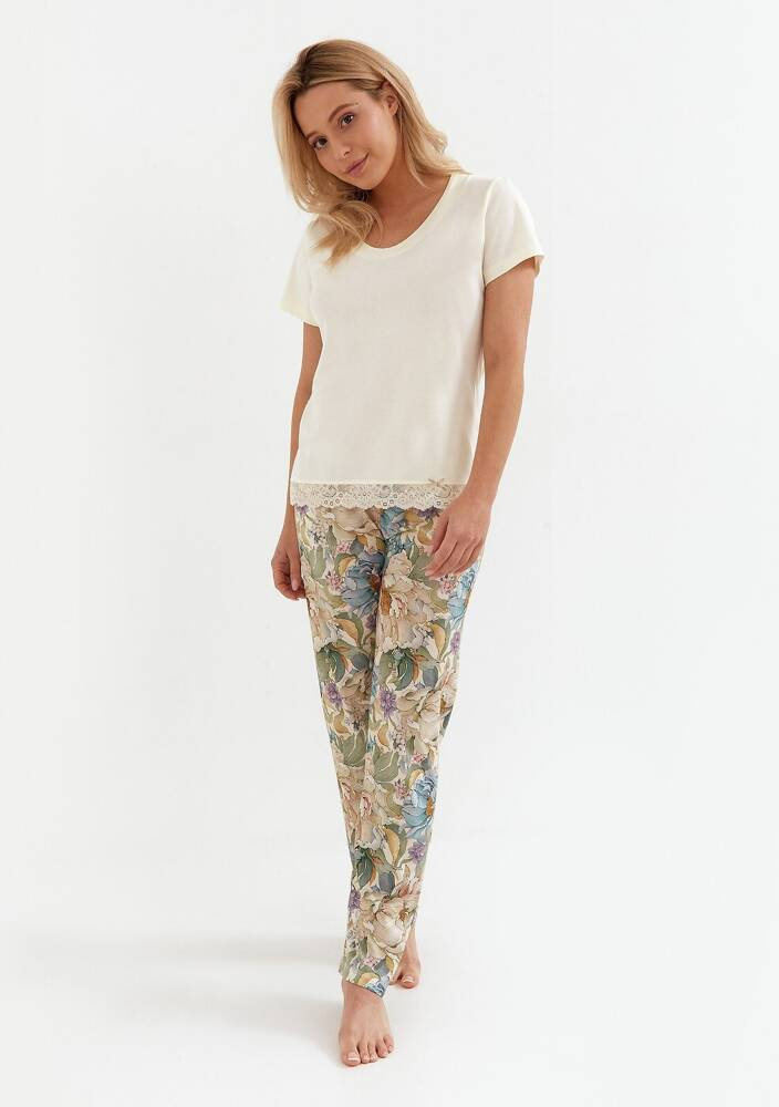 -do kompletu spodnie 7/8 ozdobione kwiatowym motywem