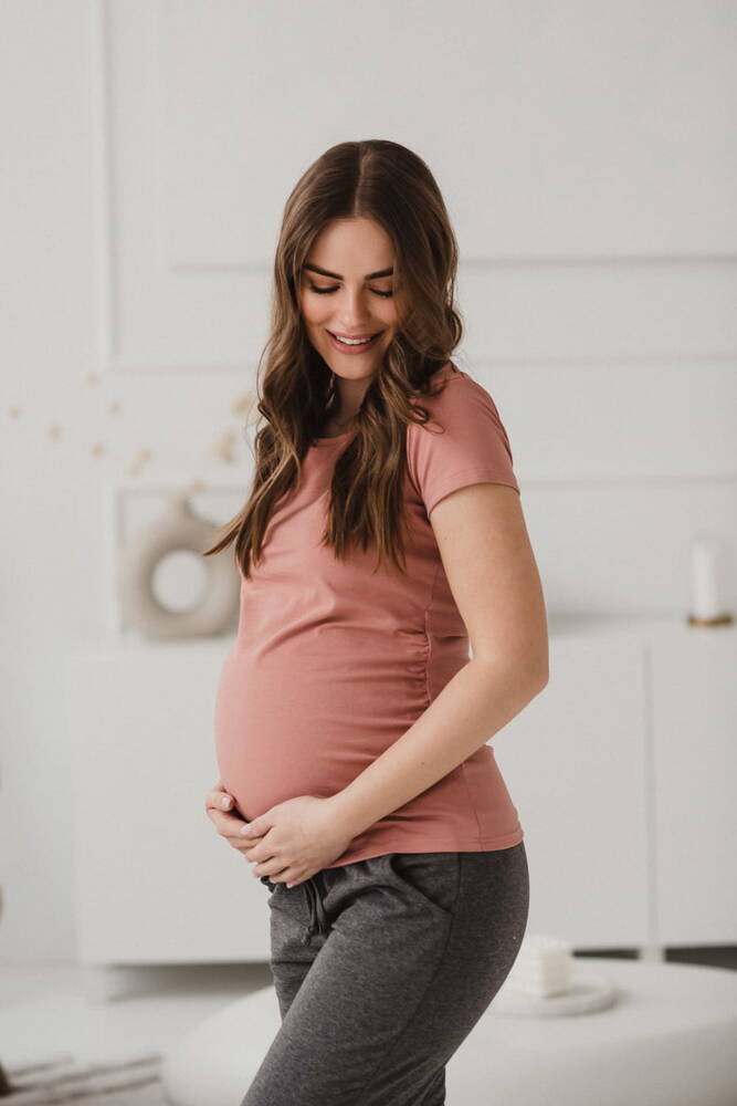 Bluzka ciążowa jest wykonana z wysokogatunkowej bawełny z dodatkiem elastanu, dzięki czemu nie rozciąga się i po praniu wraca do pierwotnego kształtu - w czasie całej ciąży wygląda świetnie i może dalej służyć po porodzie. Wykonana z najwyższej jakości, oddychające dzianiny, które przeszły rygorystyczne testy Oeko-Tex Standard 100. Dzięki nim bluzka jest miękka i przyjemna w dotyku zarówno dla mamy, jak i dziecka. Uszyta z najwyższą starannością w Polsce!