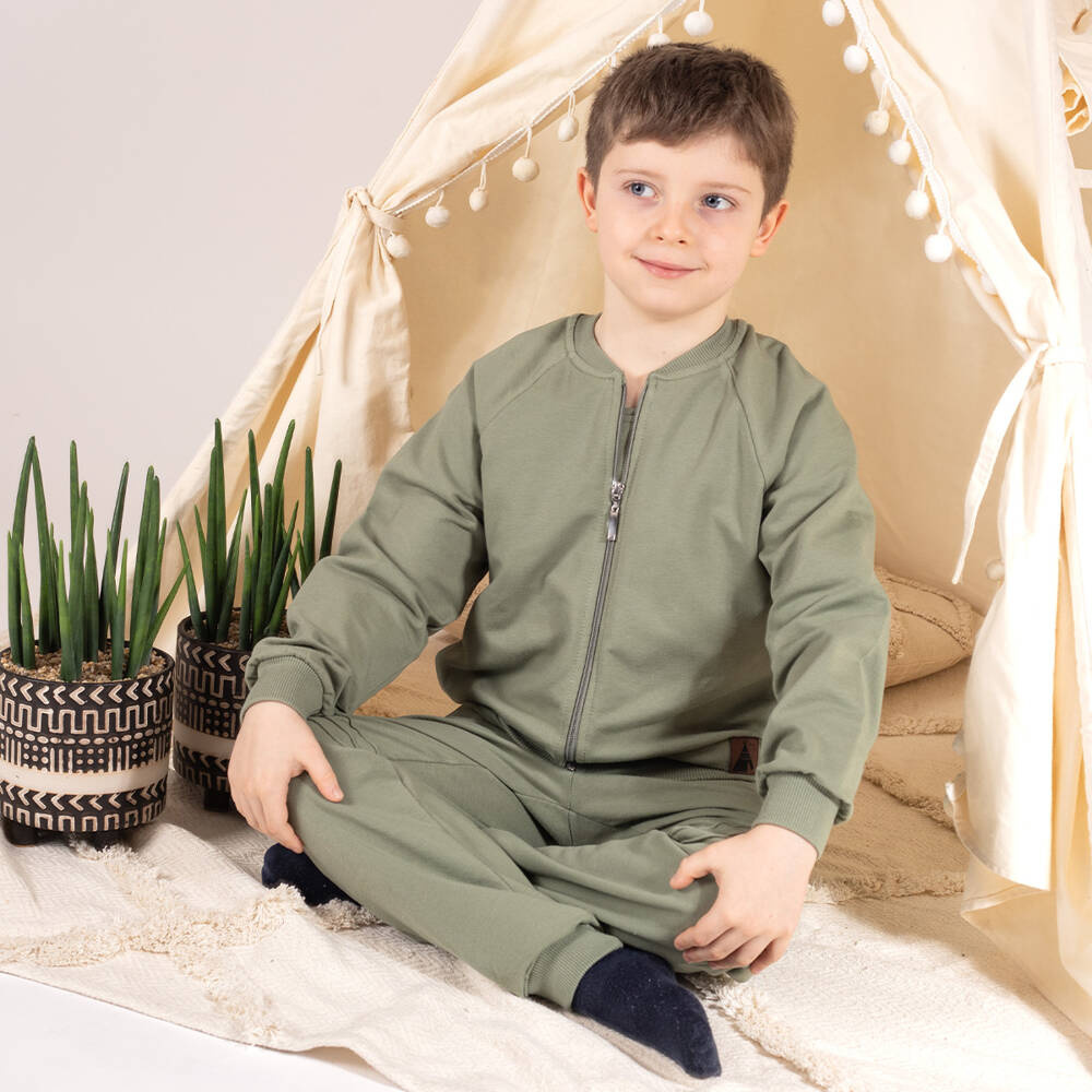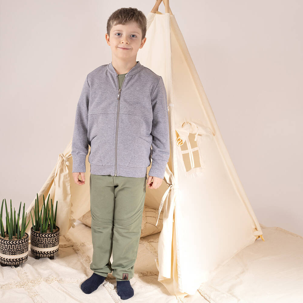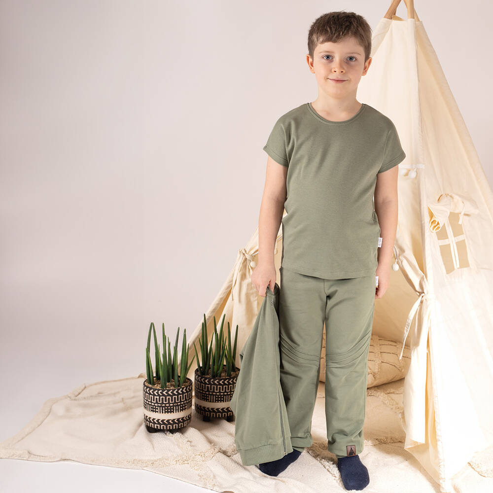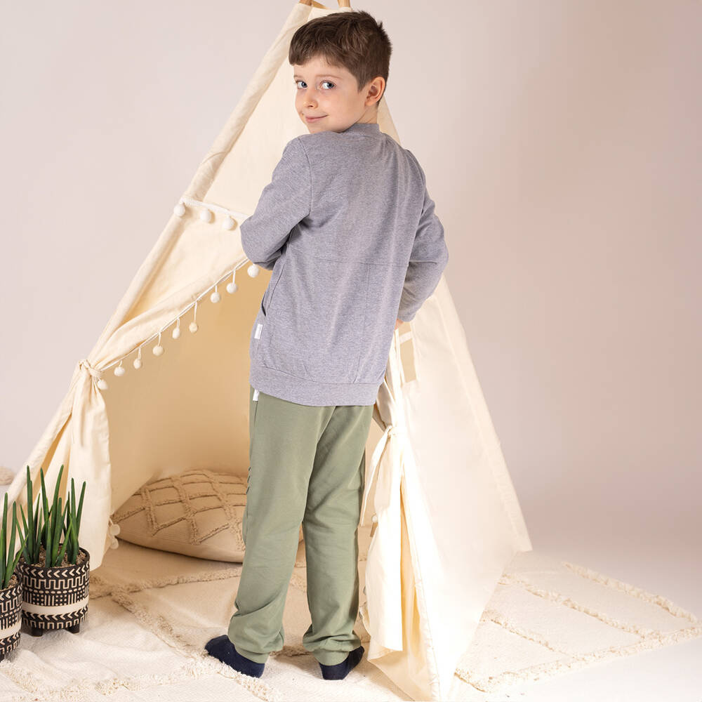 Zapytaj o produktModne spodnie dla chłopca z zielonej bawełny dresowej z niewielką ilością elastanu. Materiał posiada certyfikat Oeko-Tex Standard 100 Tekstylia godne zaufania. Fason ten charakteryzuje się prostym klasycznym krojem. Produkt zdobią kieszonki oraz imitacja rozporka. Pas oraz nogawki wykończono bezuciskowym ściągaczem. Na nogawkach ozdobne przeszycia.
