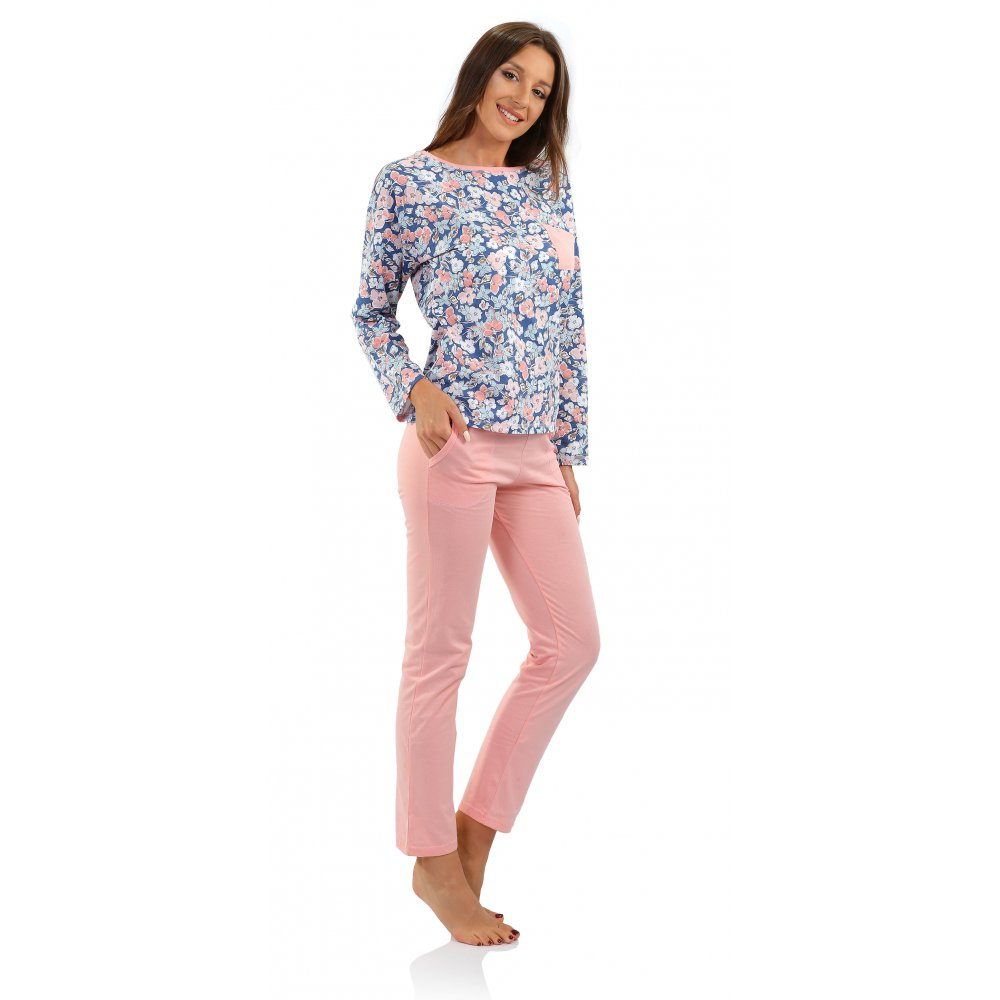 Karolina Long Piżama damska Sesto Senso morela kwiaty