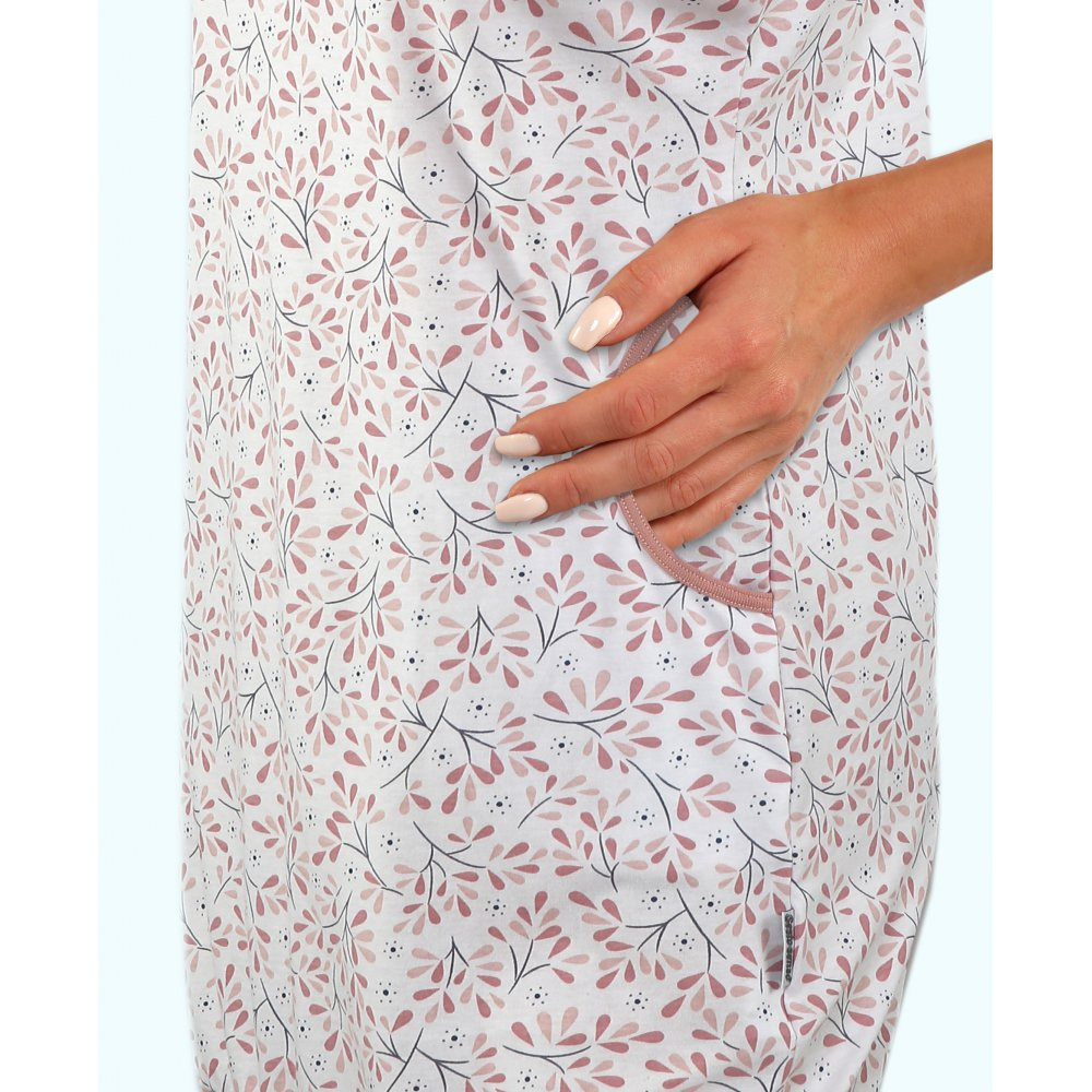 Koszula posiada dwie kieszenie boczne, modny ściągacz na dole. Sprawdzi się również jako ubiór domowy. Połączenie komfortu i stylu, stworzone z myślą o kobietach, które nawet w nocy chcą czuć się elegancko i wygodnie