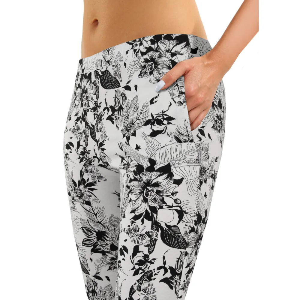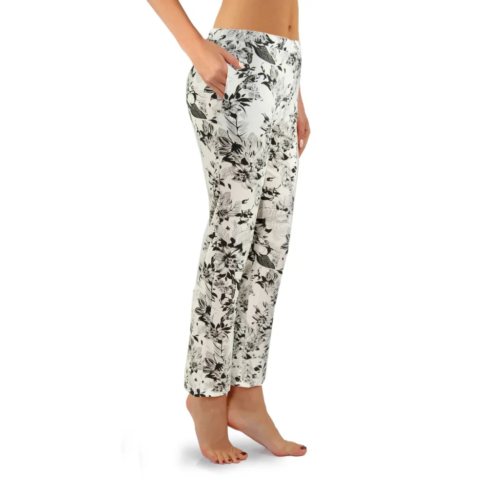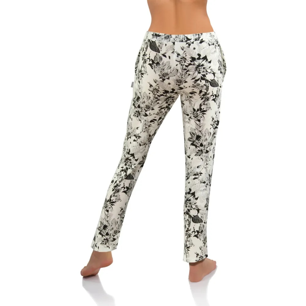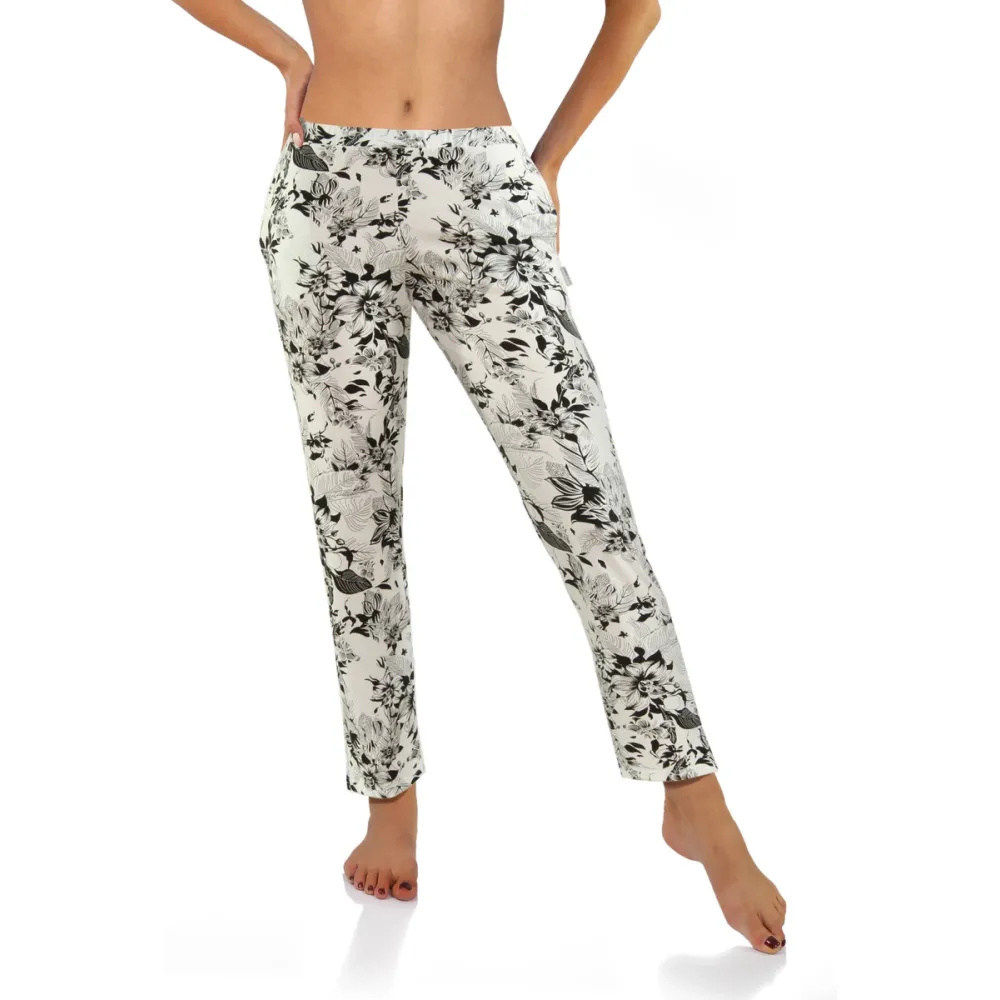 2585/02 Spodnie piżamowe Sesto Senzo kwiatki czarny/biały