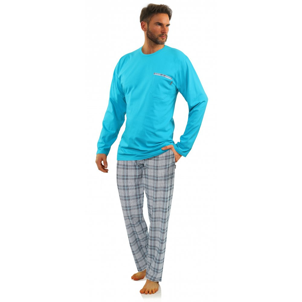 2379/27 Piżama Męska długi rękaw i spodnie Sesto Senso - turkusowy