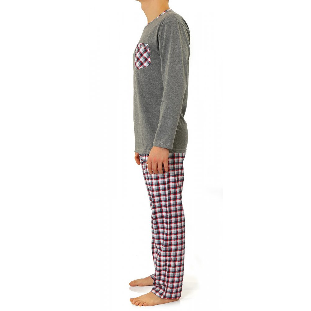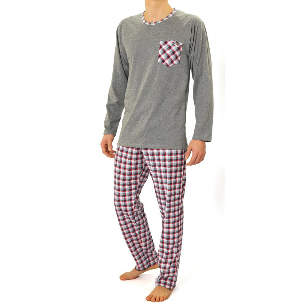 04 Piżama Męska długi rękaw i spodnie Sesto Senso - bordowy