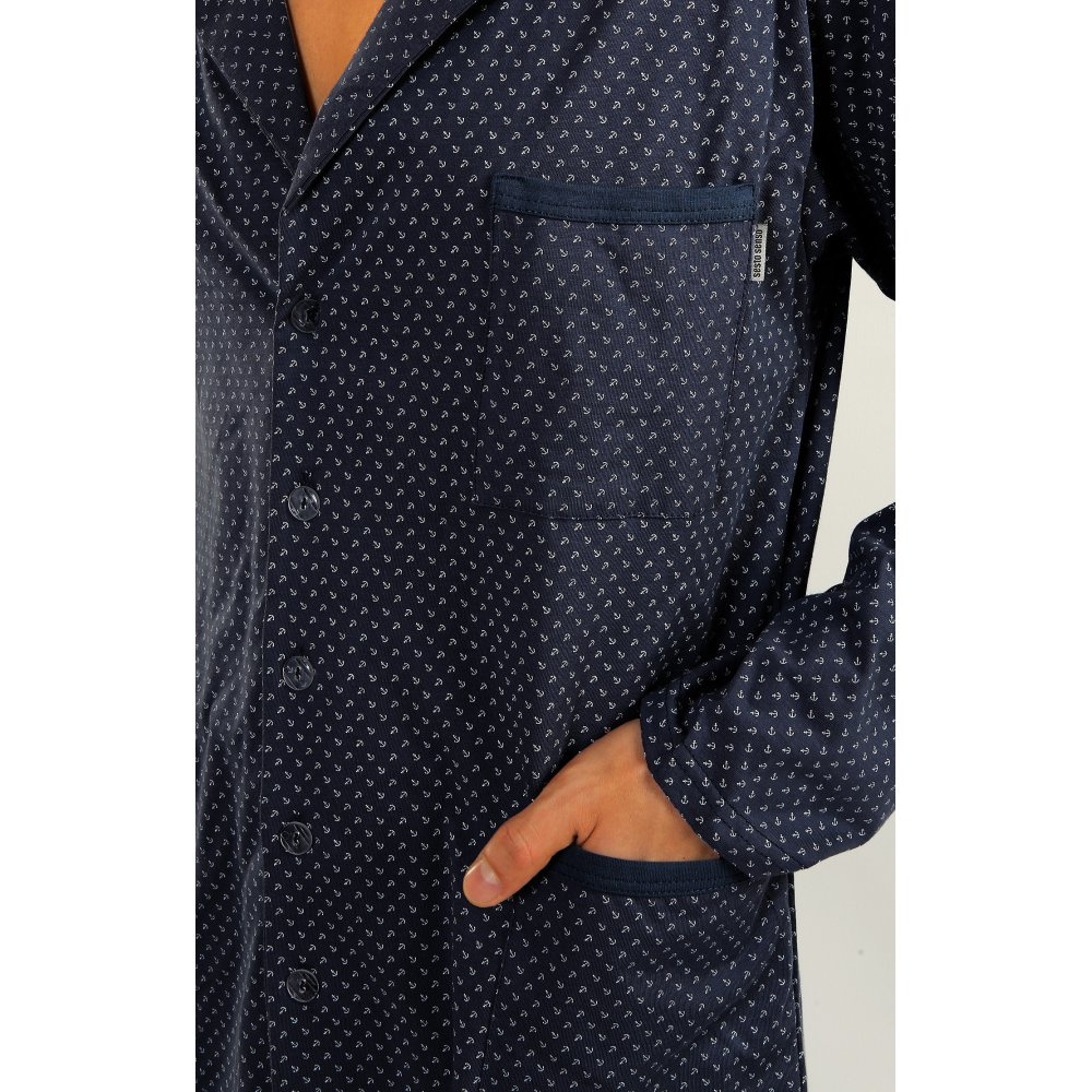 Rozpinana Piżama Męska Sesto Senso - kotwiczki granatowy