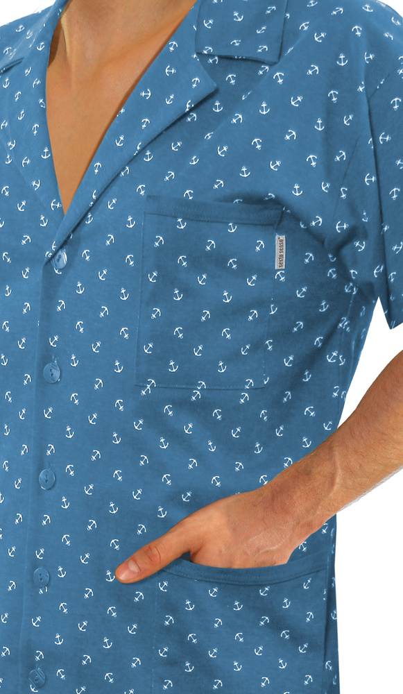 Rozpinana piżama męska długi rękaw Sesto Senso - kotwiczki jeans