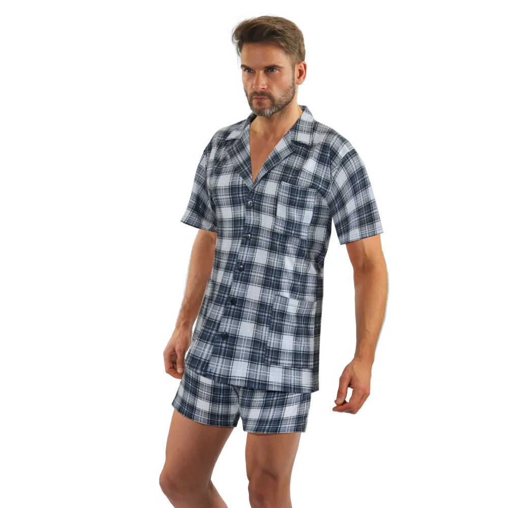 Wygodna i praktyczna piżama męska rozpinana, wykonana z najwyższej jakości bawełny. Bluza o klasycznym kroju z kołnierzykiem, zapinana na guziki, posiada praktyczne kieszonki umieszczone u dołu oraz na piersi, obszyte lamówką. Krótkie spodenki mają w pasie szeroką gumę, dodatkowo ściągane są sznureczkiem, mają też rozporek z dwoma guziczkami a po bokach kieszenie. Wygodny krój, aktualna modna kolorystyka, jakość wykonania, gwarantują wygodę użytkowania. Idealna zarówno do spania jak i do chodzenia po domu. Świetnie nadaje się na prezent, jest zapakowana w eleganckie pudełko. Wyprodukowane w Polsce.