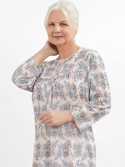 Damska rozpinana koszula nocna z  rękawem  3/4 to doskonała propozycja zarówno na lato, jak i na chłodniejsze noce. Przyjemna dla skóry 100% bawełna zapewni odpowiedni komfort termiczny, a delikatny, kwiatowy motyw przypadnie do gustu każdej kobiecie. Damska koszula nocna jest rozpinana na dekolcie, dzięki czemu idealnie nadaje się dla kobiet karmiących. Ta bawełniana damska koszula do spania to gwarancja wygody i swobody każdej nocy. Damska koszula nocna dostępna jest w rozmiarach od M do XXXL