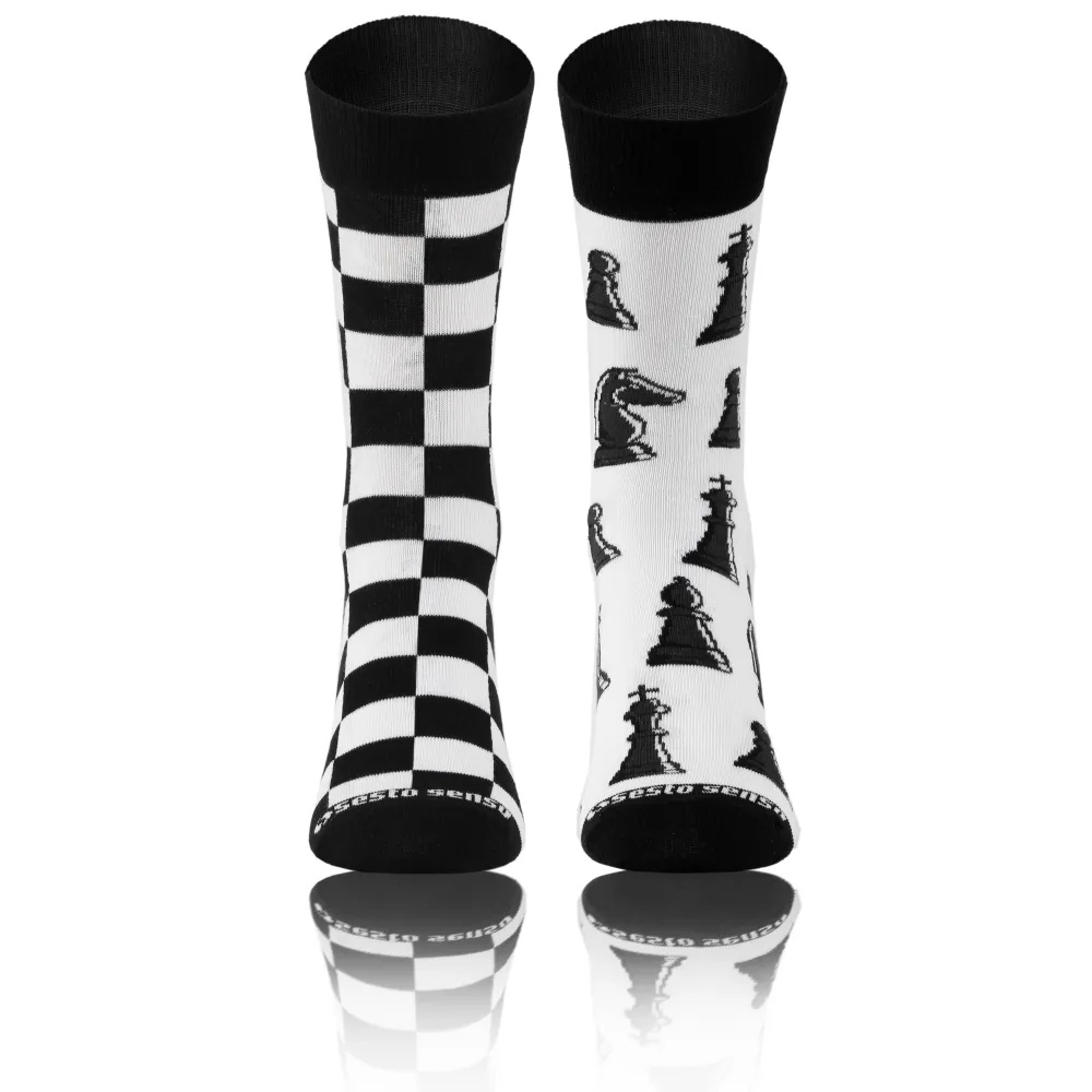 Szachy Skarpety długie finest cotton dwie różne Sesto Senso czarny