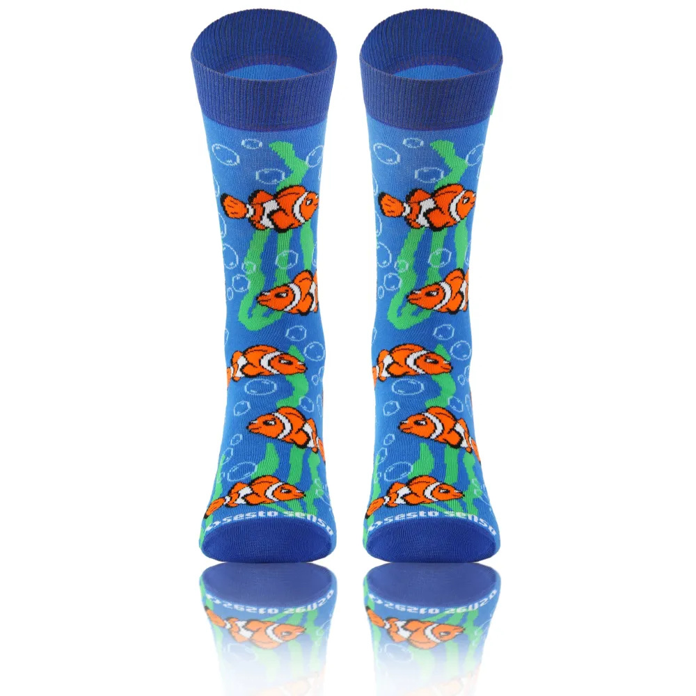 Rybki Skarpety długie finest cotton dwie różne Sesto Senso niebieski