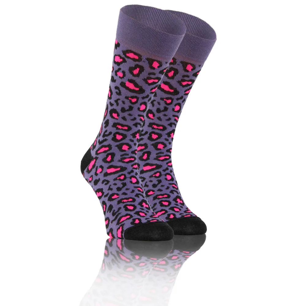 Cętki Panterka Skarpety długie finest cotton dwie różne Sesto Senso fioletowy