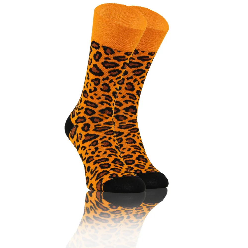 Cętki Panterka Skarpety długie finest cotton dwie różne Sesto Senso pomarańczowy