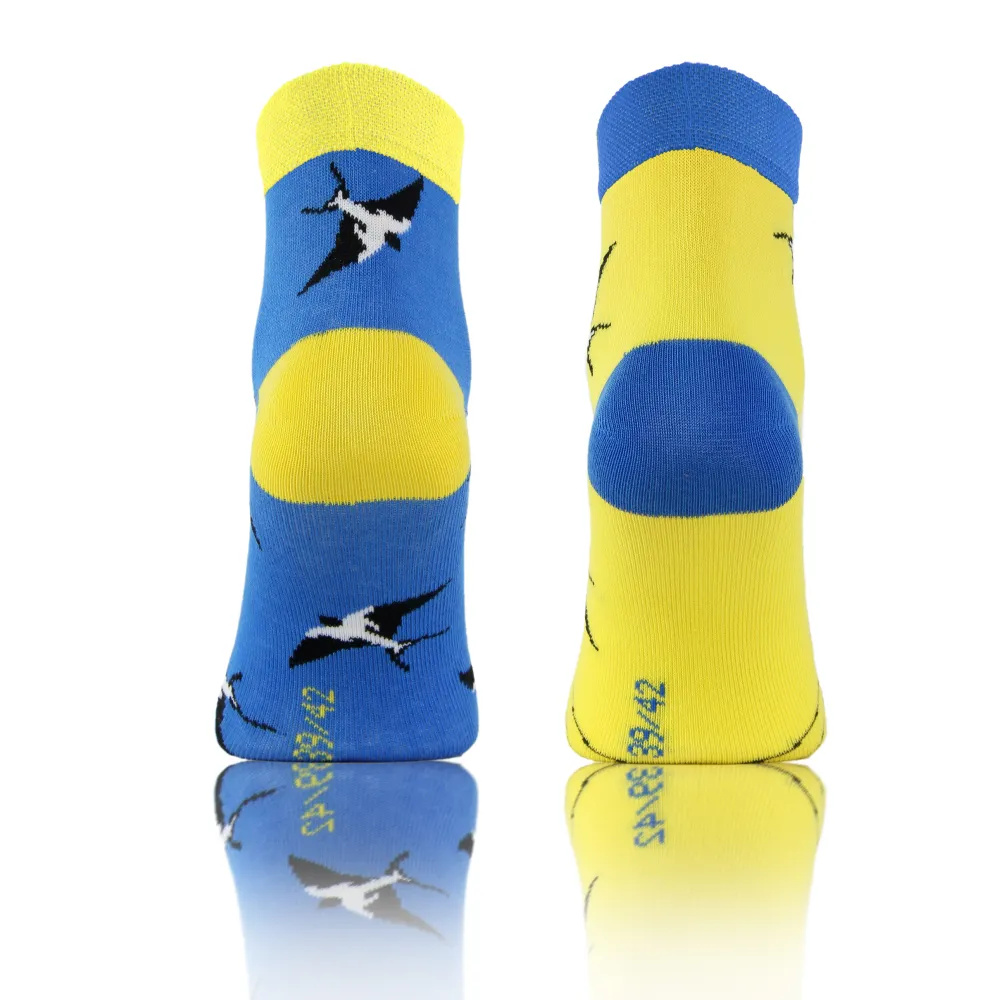 Kolorowe i modne skarpetki z oryginalnym motywem. Idealnie pasują zarówno do jeansów i sportowego obuwia, jak i do bardziej eleganckich i stonowanych stylizacji. Starannie wykonane z wysokiej jakości bawełny. Dzięki nieuciskającym mankietom i płaskim szwom są nie tylko stylowe, ale również komfortowe i niezwykle wygodne w noszeniu.