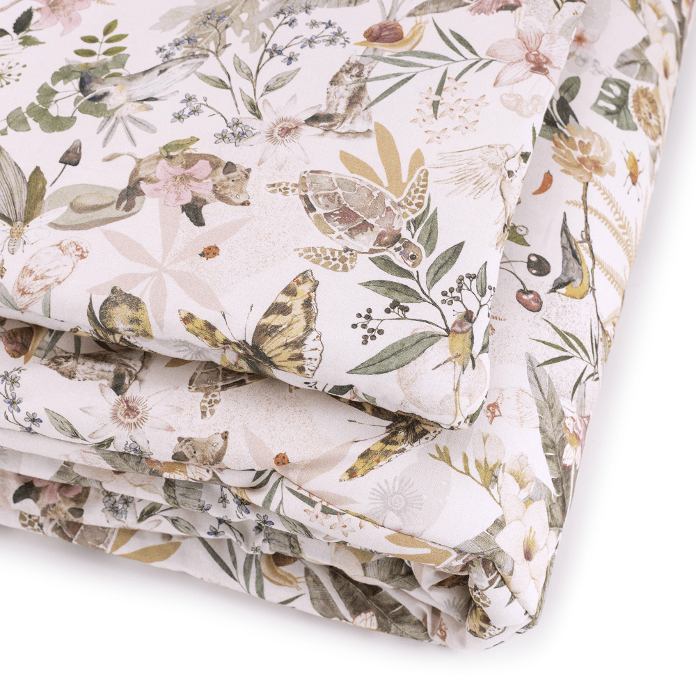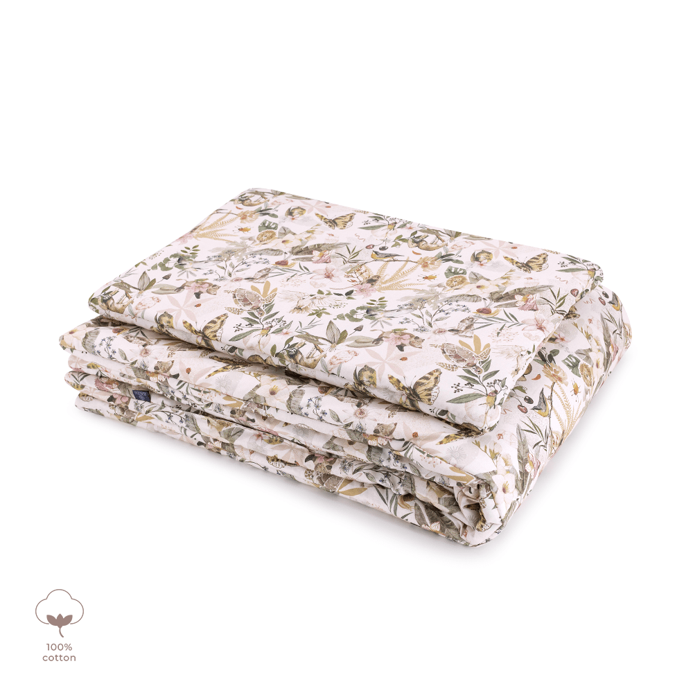 Cieplutki komplet pościeli z wszytym wypełnieniem, doskonały do kołyski, łóżeczka i na popołudniową drzemkę.