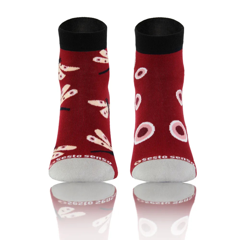 Ważki Skarpety krótkie finest cotton dwie różne Sesto Senso bordowy