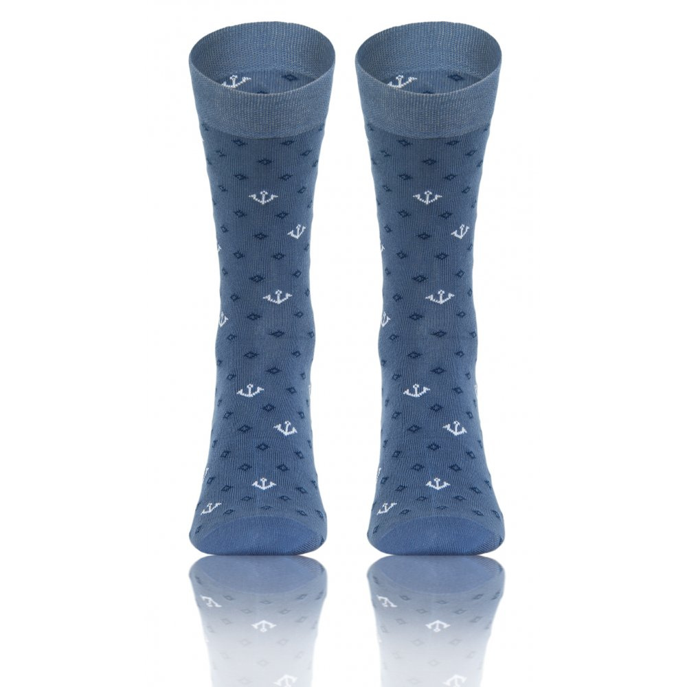 Classic Skarpety męskie garniturowe Sesto Senso wzór kotwice jeans