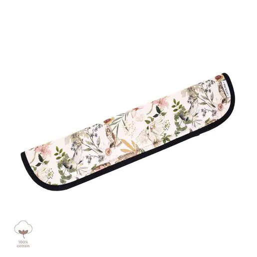 Zapytaj o produktOchraniacz na pałąk wózka, wykonany z miękkiej dzianiny bawełnianej, zapewniający komfort i ochronę podczas spacerów. Nowy kształt osłonki doskonale dopasowuje się do pałąka wózka, a bawełniana lamówka nadaje jej estetyczny wygląd. Wewnętrzna część ochraniacza wyposażona jest w ukryte zapięcie na rzep, a wypełnienie z antyalergicznej, lekkiej silikonowej włókniny zapewnia dodatkową miękkość.