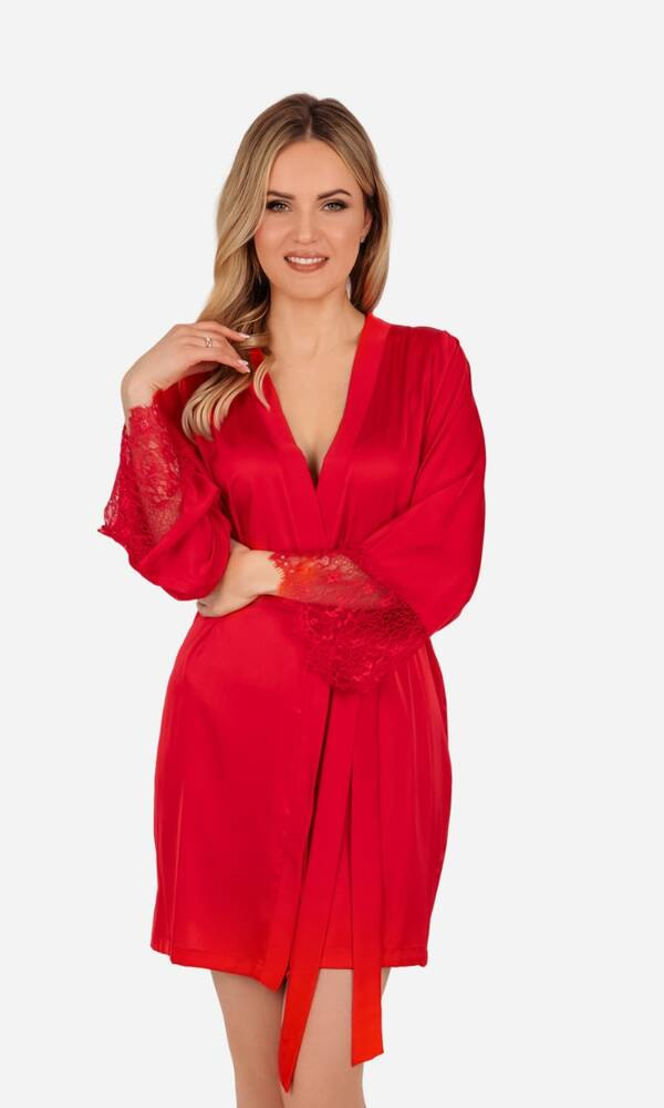 Patricia Szlafrok damski satynowy ByShelly - czerwony