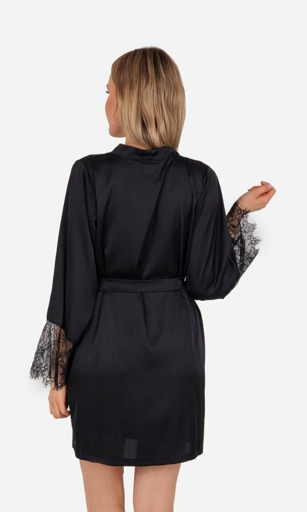 Patricia Szlafrok damski satynowy ByShelly - czarny