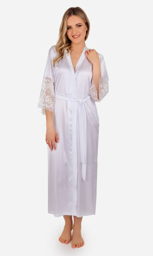 kraj produkcji: POLSKASzlafrok długi premium wykonany z przyjemniej w dotyku satyny włoskiej z obszyciem szerokiej koronki przy rękawie. Bez krępowania można go swobodnie założyć na bieliznę. Idealnie sprawdza się podczas przygotowań Panny Młodej, jak i świadkowej.