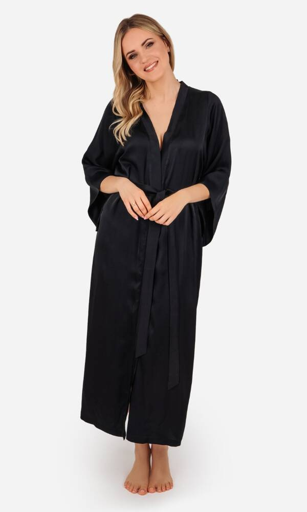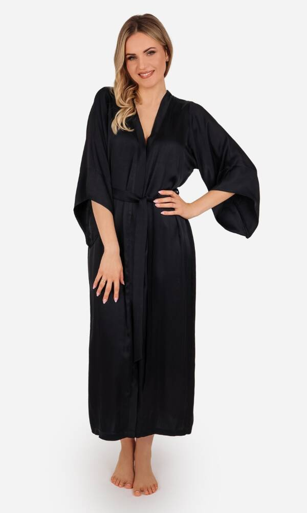 Elizabeth Szlafrok damski satynowy ByShelly - czarny