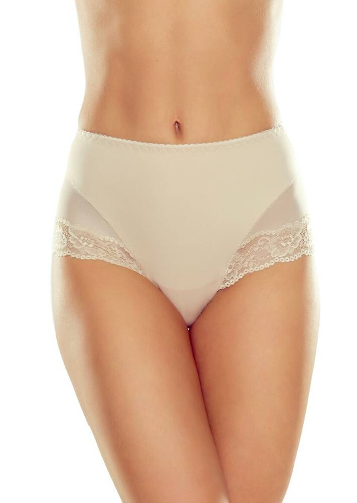 Figi modelujące sylwetkę uszyte z opinającej siateczki i mikrofibry z dodatkiem efektownej koronki