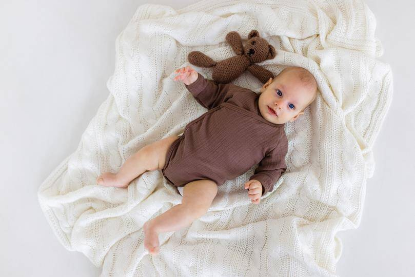 03252C "Bamboo Muslin Choco" Body dzidziuś rozpinane muślinowe Makoma