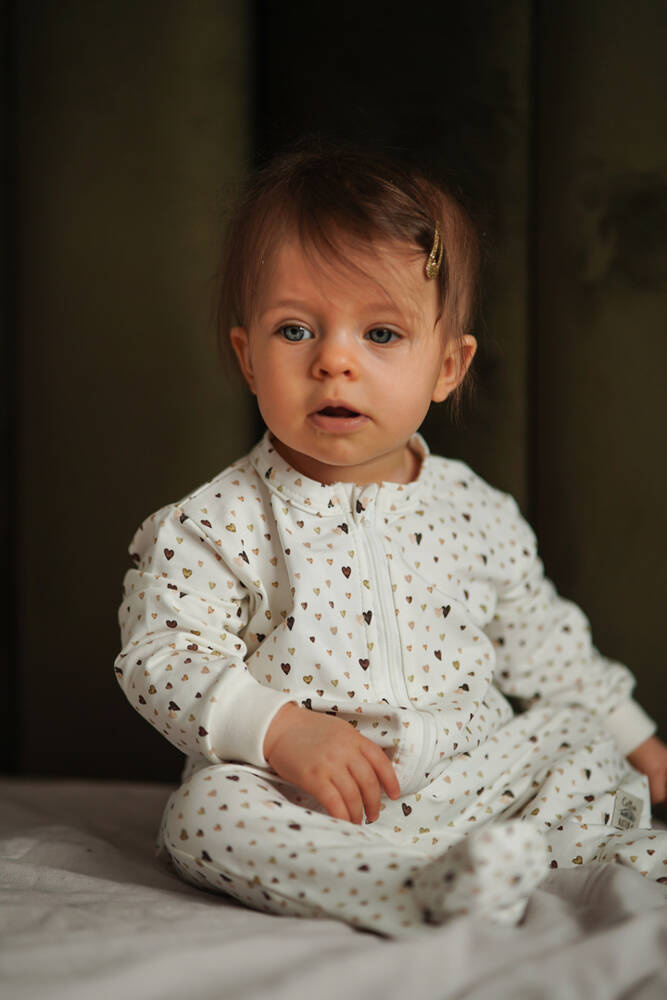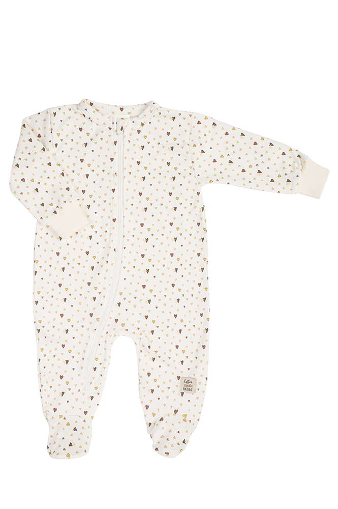 02250B "Hearts Brown" Pajacyk niemowlęcy dresowy Makoma