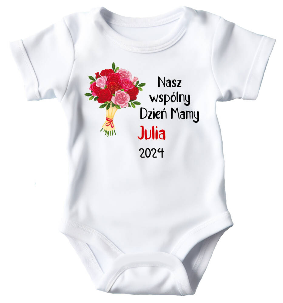 SKU 009MC "Nasz współny Dzień Mamy z imieniem" Body krótki rękaw Moocha biały