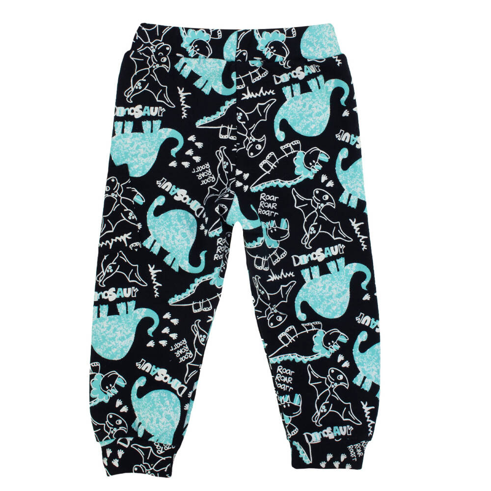 Zapytaj o produktSpodnie dresowe wykonane z wysokogatunkowej, czarnej bawełny z domieszką elastanu z motywem dinozaurów w turkusowej kolorystyce z elementami białymi. Doskonały wybór do codziennych stylizacji, zapewnią komfort noszenia gdyż w pasie wszyto wygodną gumkę, nie uciskającą brzuszka. Posiadają kieszenie.
