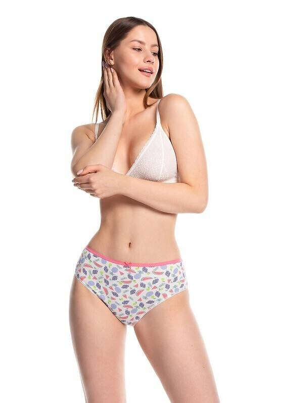 Kolorowe figi damskie o klasycznym kroju wykonane z wysokiej jakości bawełny.