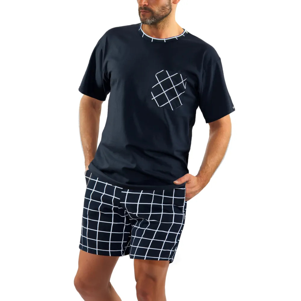2024/01 Piżama Męska krótki rękaw, spodenki Sesto Senso granatowy