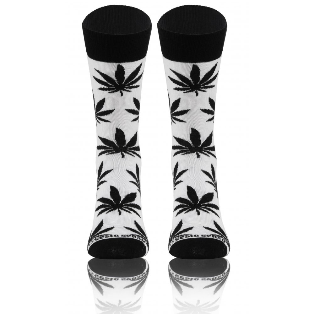 Liść Skarpety długie finest cotton dwie różne Sesto Senso czarny/biały biała góra