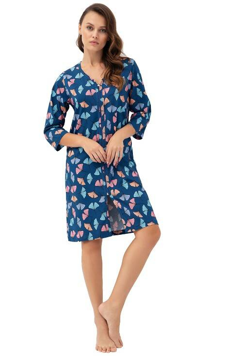 Szlafrok damski z rękawem 7/8 wykonany z wysokiej jakości bawełny , doskonale sprawdzi się nie tylko w warunkach domowych, ale również w szpitalu czy sanatorium. Posiada wygodne  kieszenie