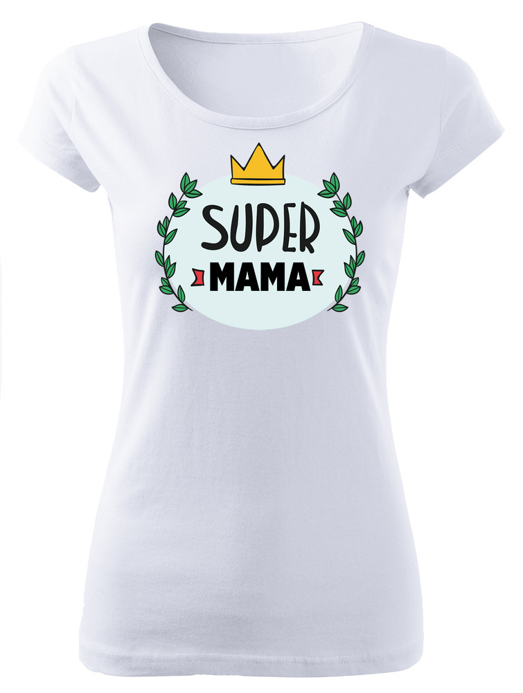SKU D041 "Super mama" koszulka damska Moocha biały