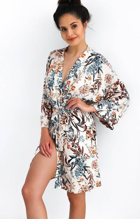 Szlafrok damski ozdobiony kwiatowym motywem, wykonany z wysokiej jakości wiskozy.