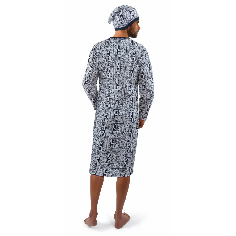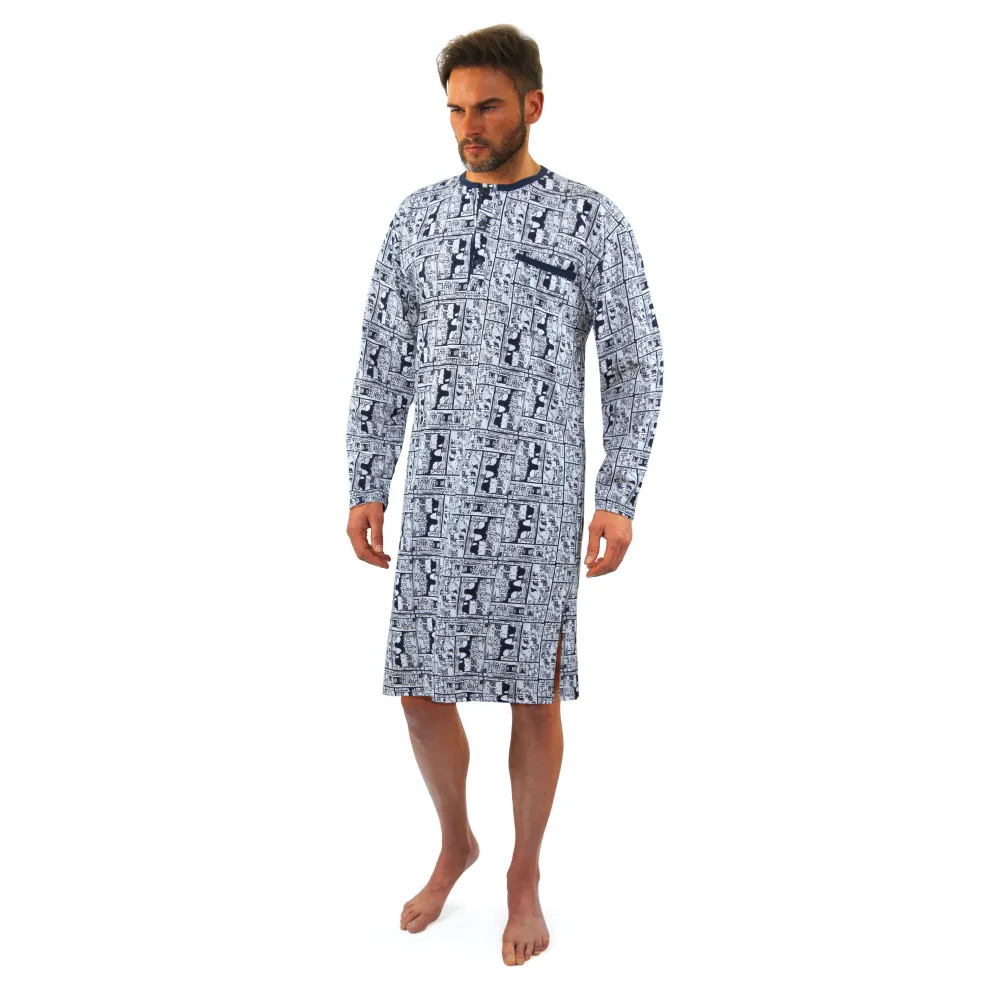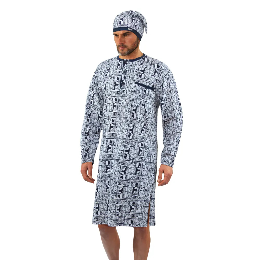 Koszula nocna męska z długim rękawem. Uszyta z wysokiej jakości bawełny w oryginalny wzór.