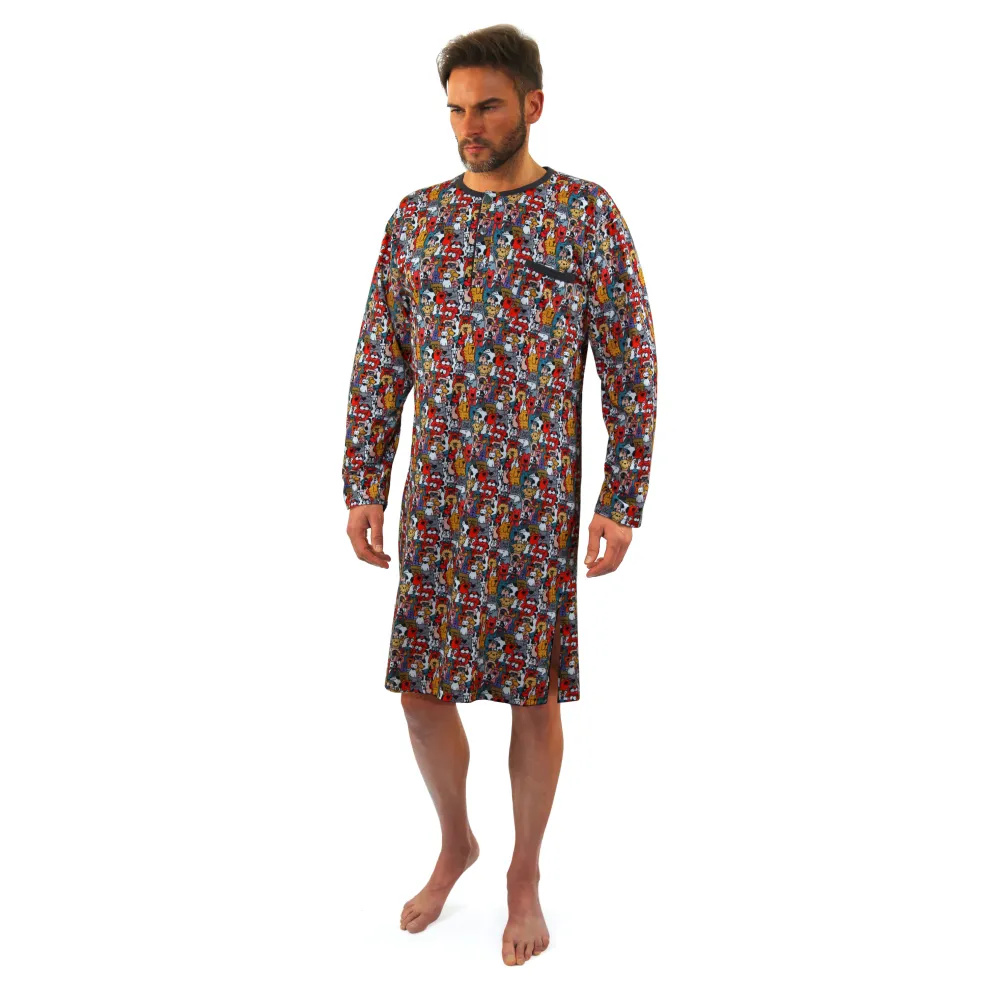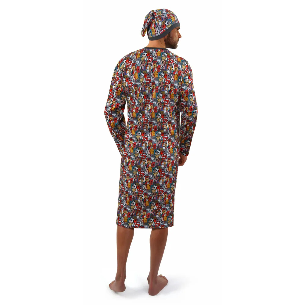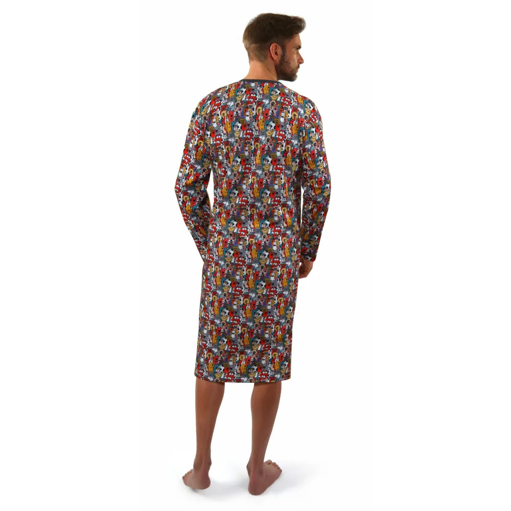 Koszula nocna męska z długim rękawem. Uszyta z wysokiej jakości bawełny w oryginalny wzór.