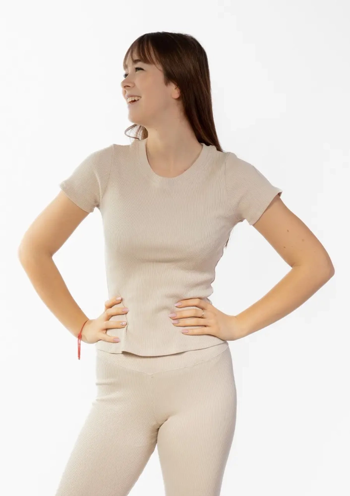 Halima Bluzka damska prążkowana Dkaren - beżowy