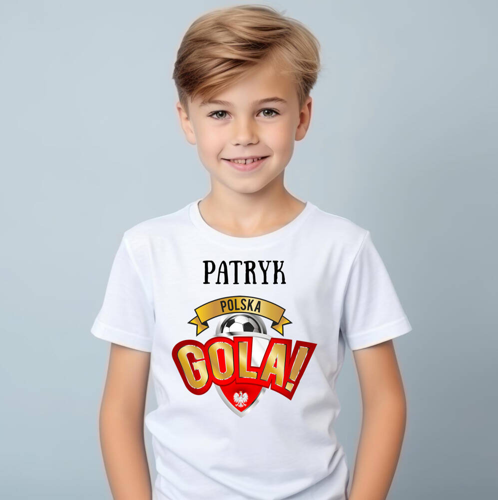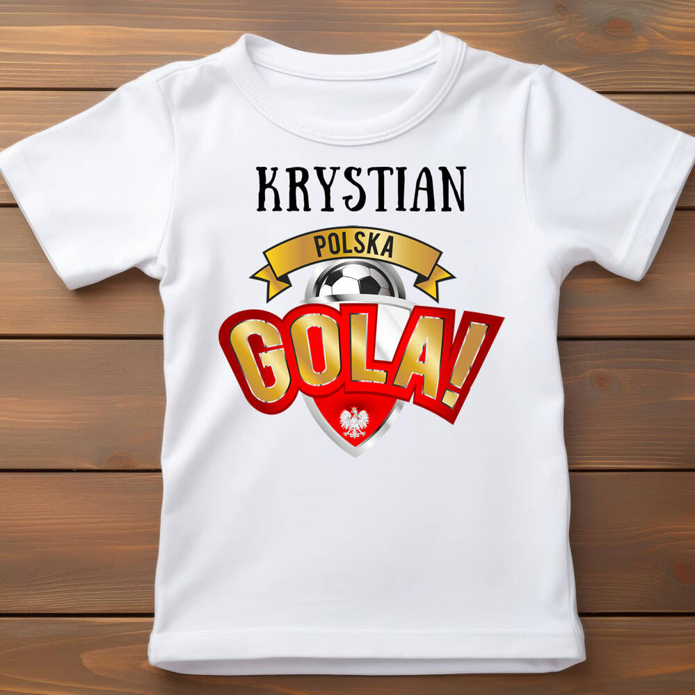 "Polska gola z imieniem" Koszulka dziecięca krótki rękaw Moocha biały