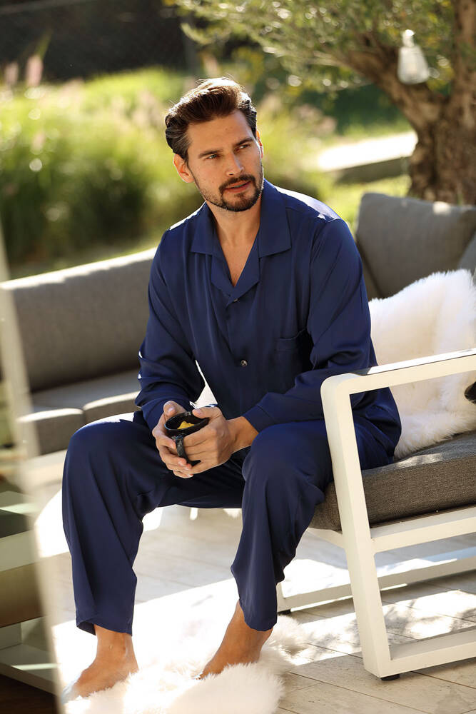 Wyjątkowo wygodna piżama męska wykonana z najwyższej jakości satyny premium, jest niezwykle przyjemna w dotyku, a jednocześnie prezentuje się luksusowo i stylowo.