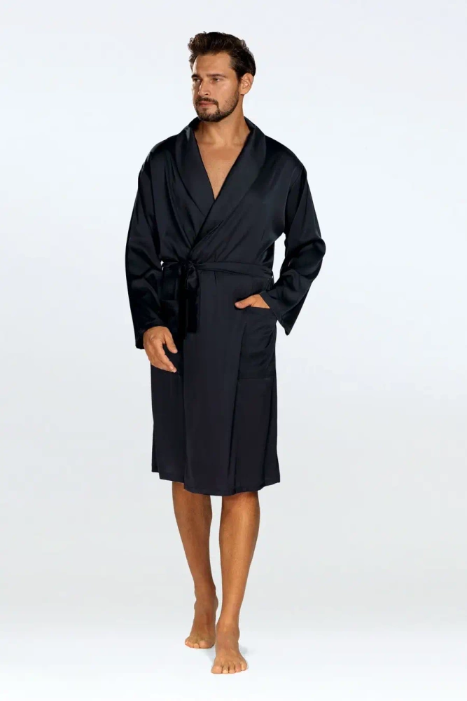 Podomka Lukas to nie tylko odczuwalny komfort, ale także niezwykła elegancja. Dzięki starannemu wykończeniu i doskonałej jakości materiałowi, ten szlafrok prezentuje się wyjątkowo stylowo. Satyna jest gładka, delikatna i miękka, co sprawia, że noszenie szlafroka staje się prawdziwą przyjemnością. Szlafrok jest wiązany w pasie, posiada dwie kieszenie, które są idealne do przechowywania telefonu.