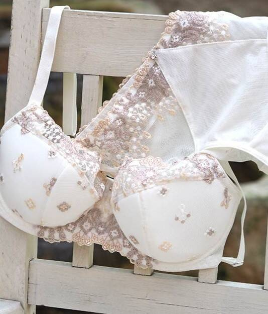 Biustonosz półusztywniony, dolna część miski z pianki pokrytej wzorzystym plenem, góra z koronki w tym samym motywie, całość wzbogacona złoto-srebrną nitką. Wnętrze miseczek z bawełny. Ramiączka regulowane, nie odpinane. Konstrukcja na średnie i duże biusty-zapewni maksymalne podtrzymanie i komfort użytkowania.