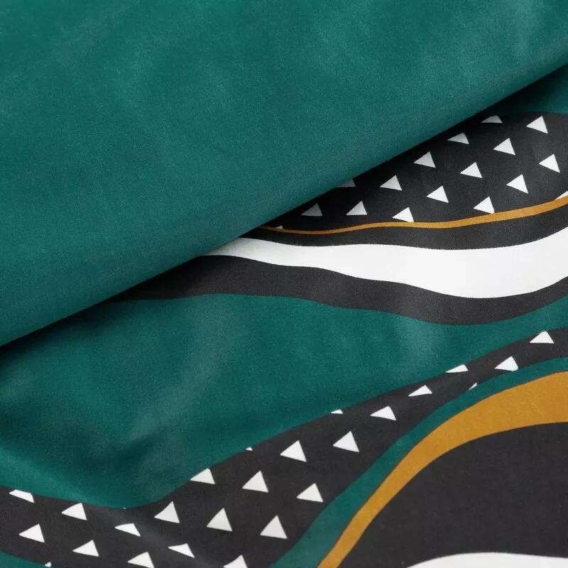 Pościel satynowa posiada delikatną miękkość oraz jedwabisty połysk, a jej dodatkowym atutem jest łatwość prasowania oraz wysoka odporność na uszkodzenia. Wierzchnia strona posiada nadruk w żywych, kontrastujących barwach, zaś spód zaprojektowano w jednolitym kolorze. Trwałość materiałów i dokładność wykończenia składają się na niebywałą jakość pościeli. Kolory są wyraziste i zachowują swoją pierwotną barwę nawet po wielu praniach.