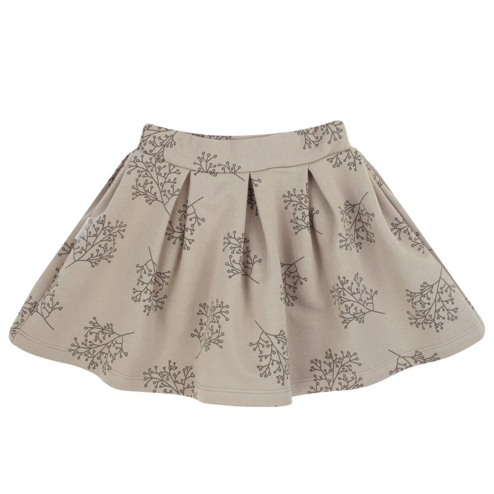 Zapytaj o produktSpódniczka beżowa w motyw grafitowych listków, pasuje do kolekcji Gaja. Wykonana z bawełny dresowej. W pasie ściągacz z gumką, która ułatwia ubieranie i dobrze trzyma się na wysokości talii. Dzięki zastosowaniu kontrafałd, spódniczka ładnie rozkloszowuję się w literę A.