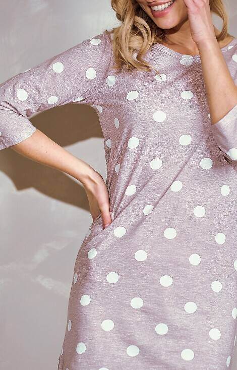 Koszula damska z rękawem 3/4. Całość uszyta z wysokiej jakości wzorzystej bawełny. Okrągły dekolt. Długość przed kolano.