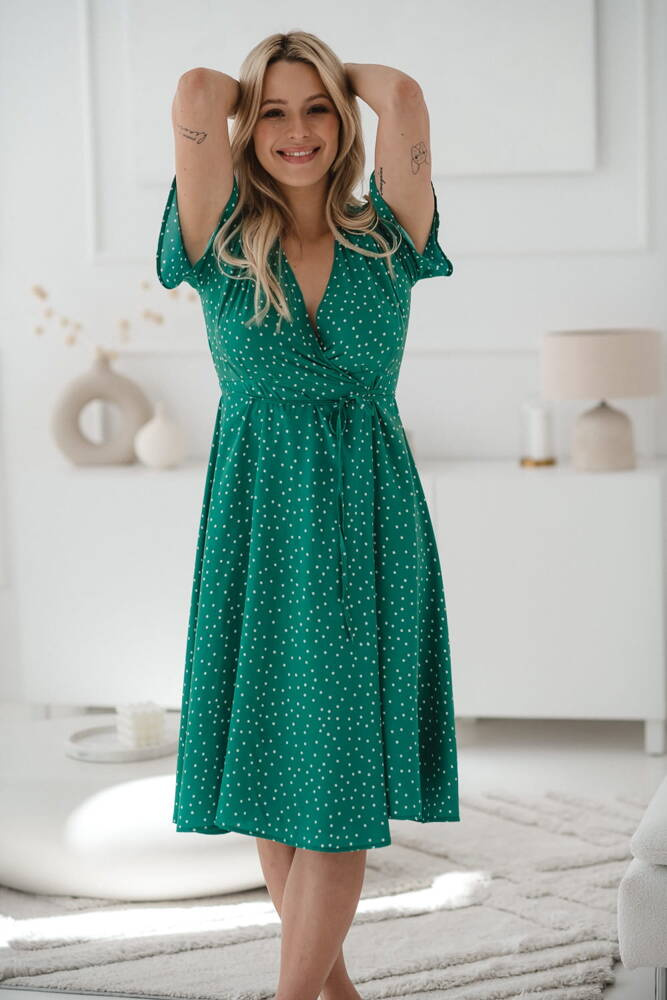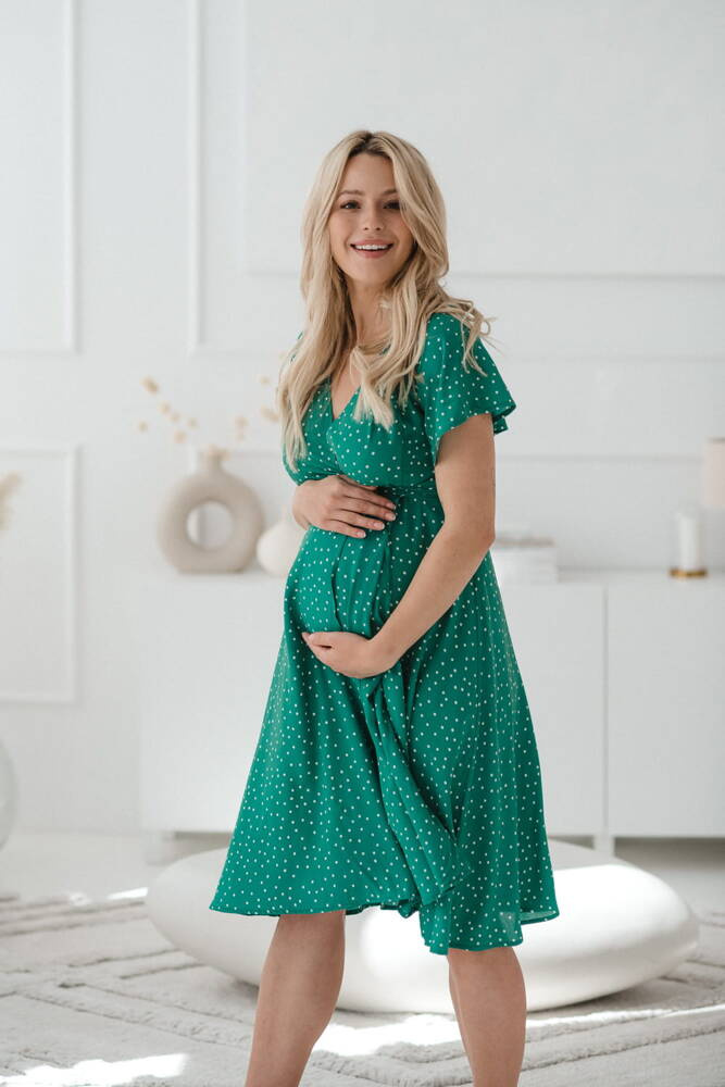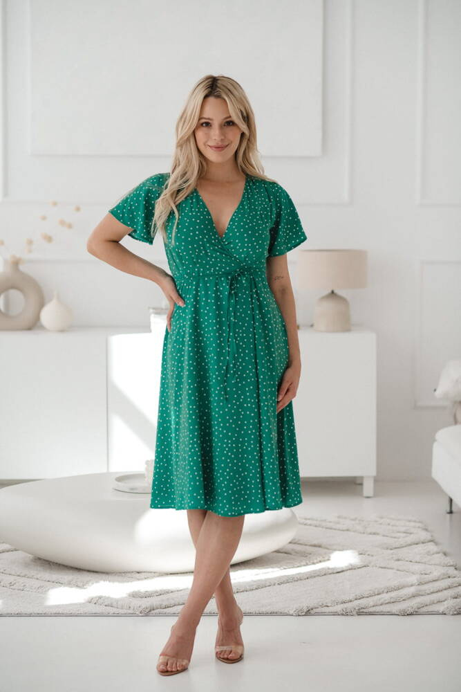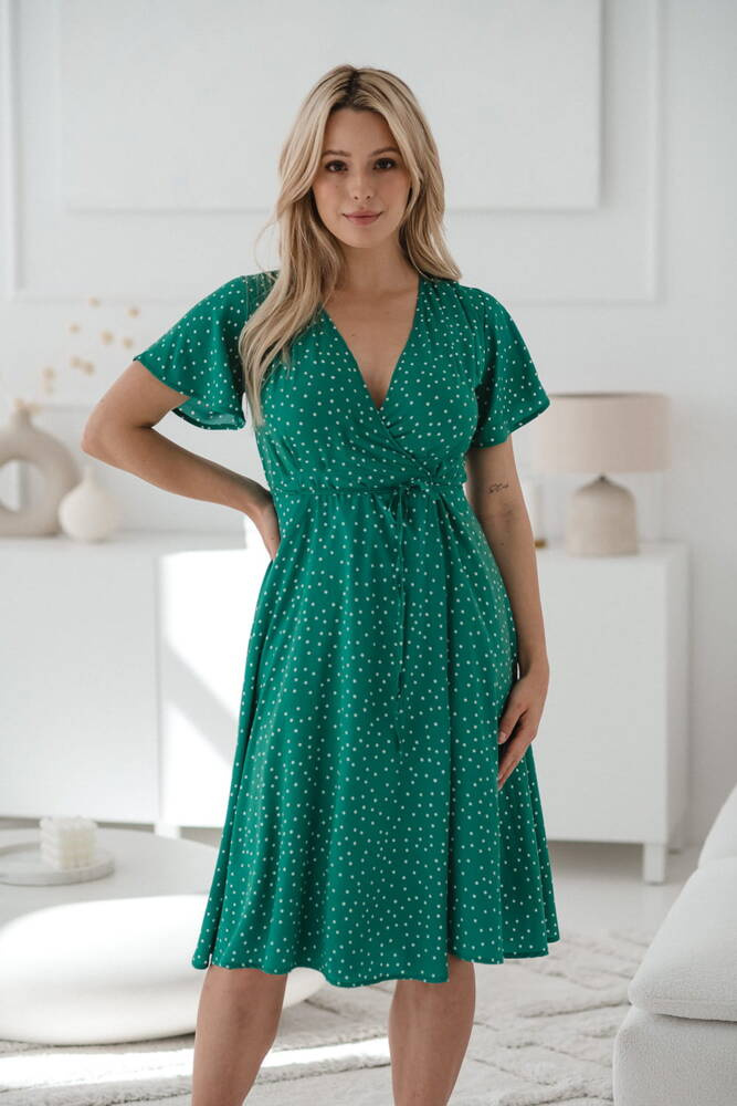Milk Shake Sukienka ciążowa i do karmienia krótki rękaw Milk&Love zielona w groszki